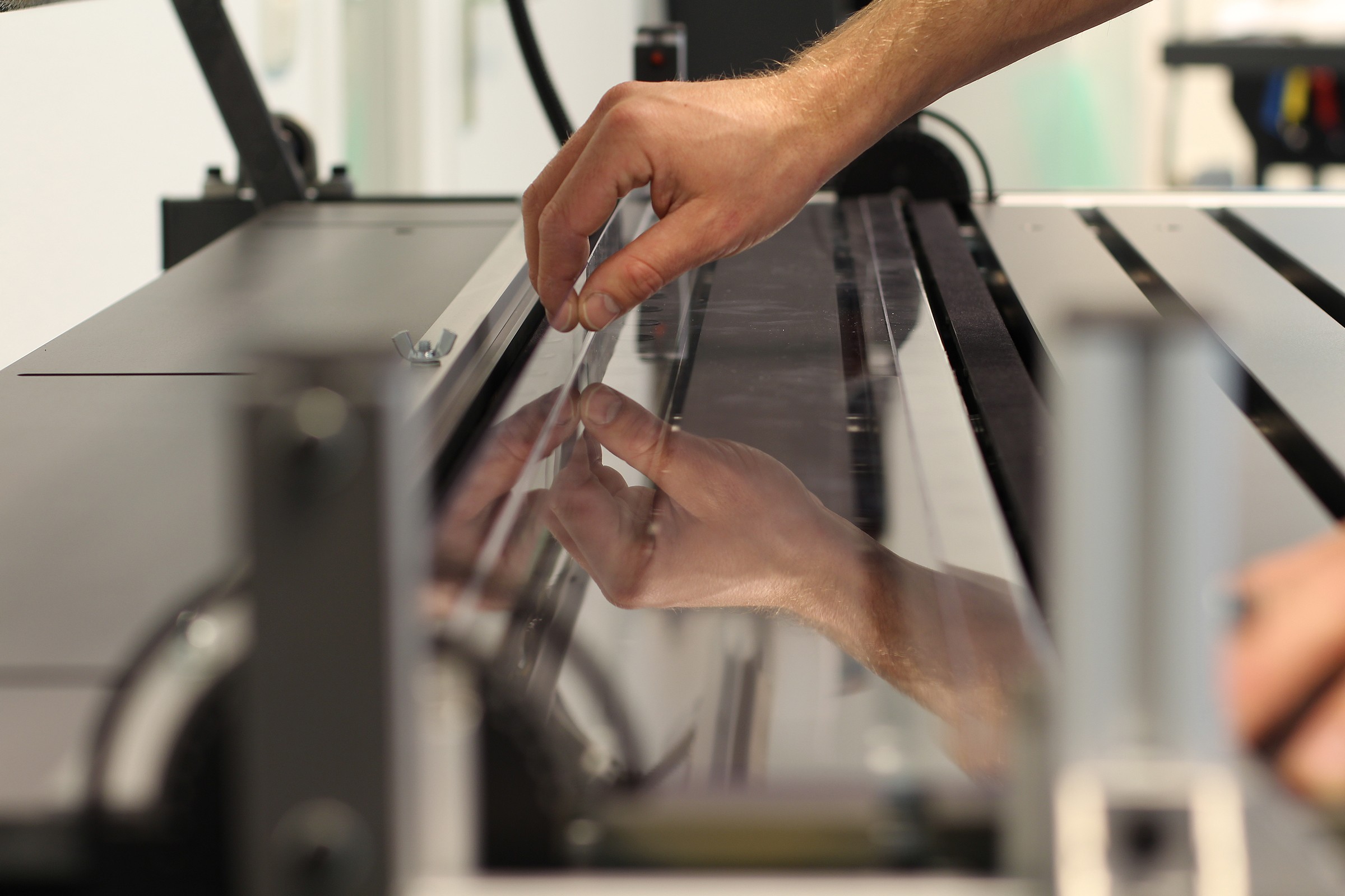 La màquina AFF-D 135 de plegat automàtic per a làmines primes és molt fàcil de manejar. Permet l'ajust dels fils calents, plecs i temps de refredament. A més, és ideal per a grans sèries, compta amb ajustament d'angle de calibratge i ofereix un resultat perfecte, també per a grans longituds. Proveït de parada posterior ajustable. El control digital de temperatura a graus Celsius o Fahrenheit.