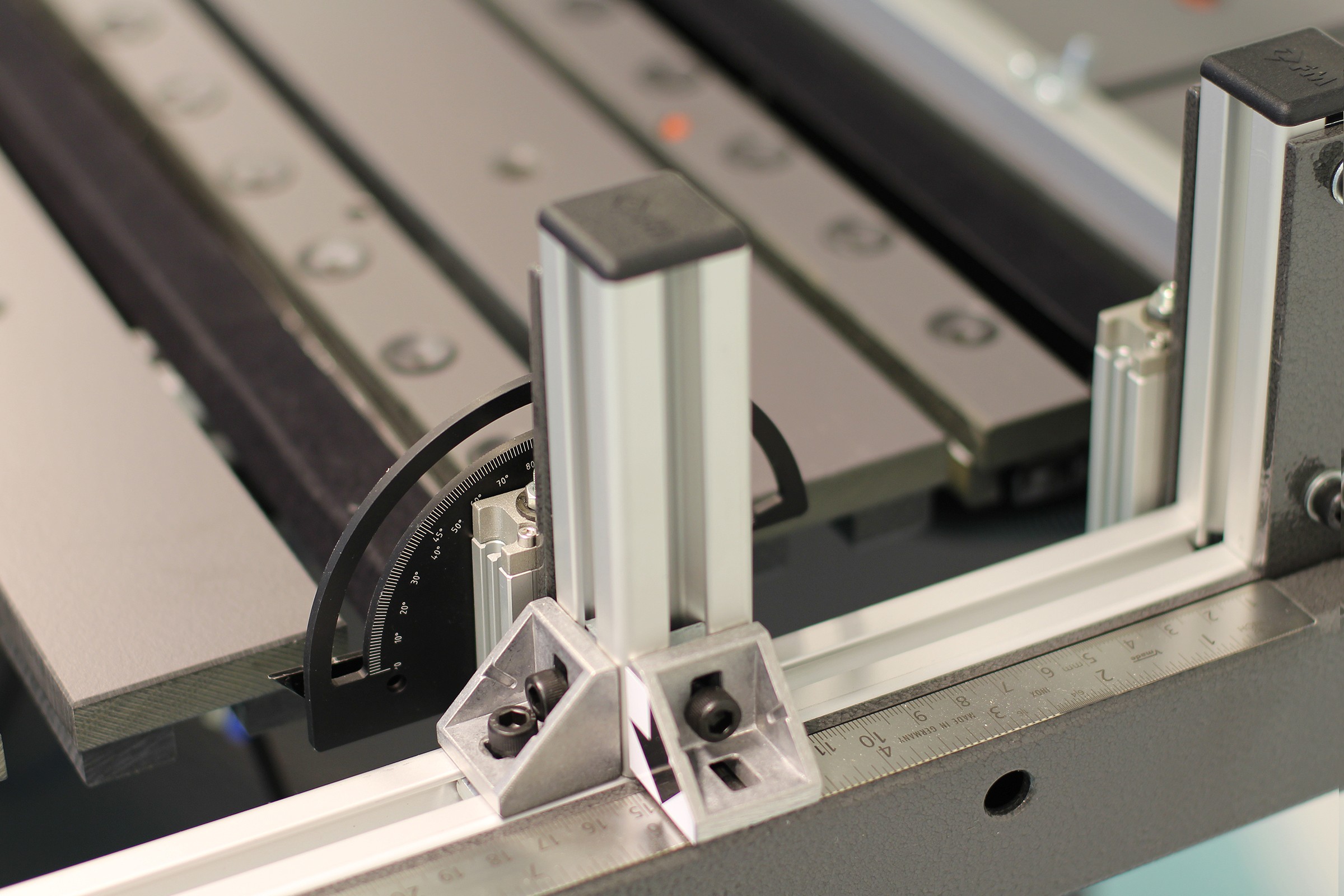 Superfície de la taula duradora proveïda d'un topall paral·lel ajustable.