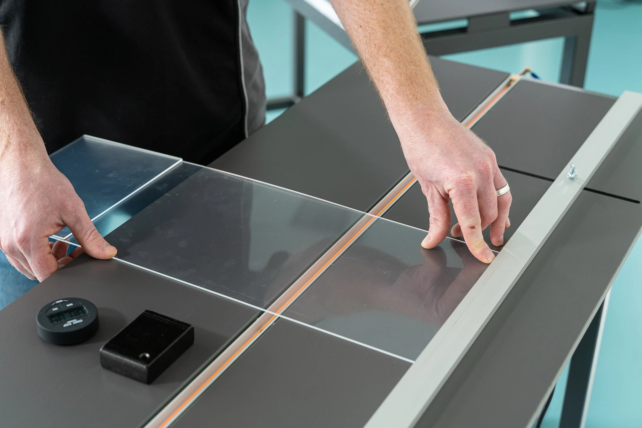 La temperatura del filament es pot ajustar electrònicament amb molta precisió mitjançant una unitat de control. L'altiplà de treball durador resistent a la calor té i a les ratllades i està equipada amb un topall posterior paral·lel amb 2 regles o un topall lateral i una sola regla.