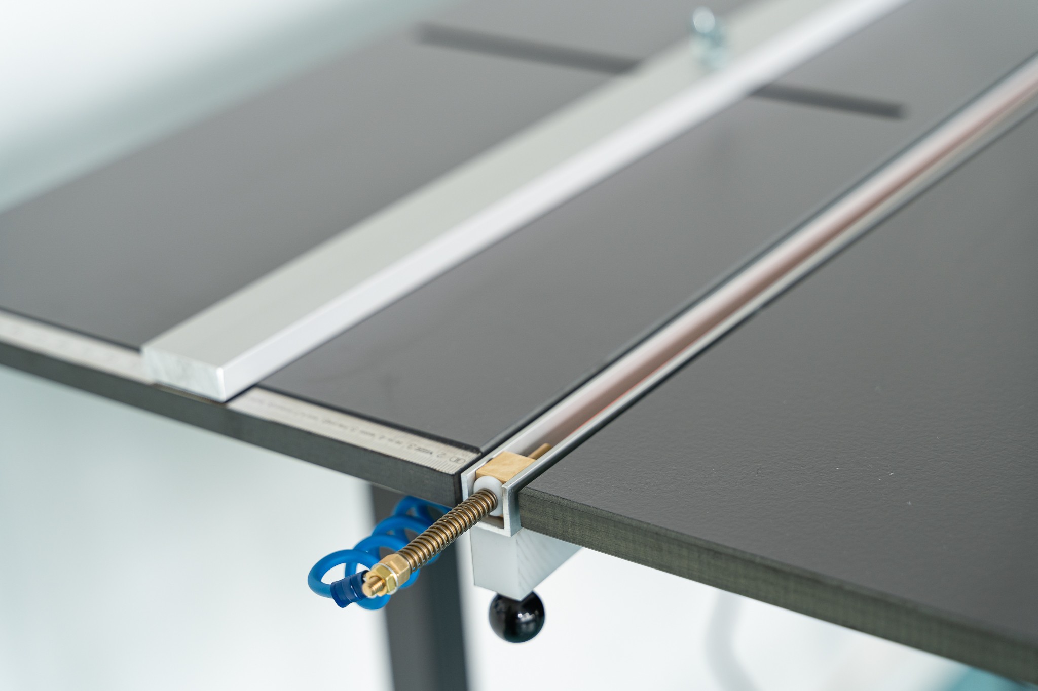 La temperatura del filament es pot ajustar electrònicament amb molta precisió mitjançant una unitat de control. L'altiplà de treball durador resistent a la calor té i a les ratllades i està equipada amb un topall posterior paral·lel amb 2 regles o un topall lateral i una sola regla.