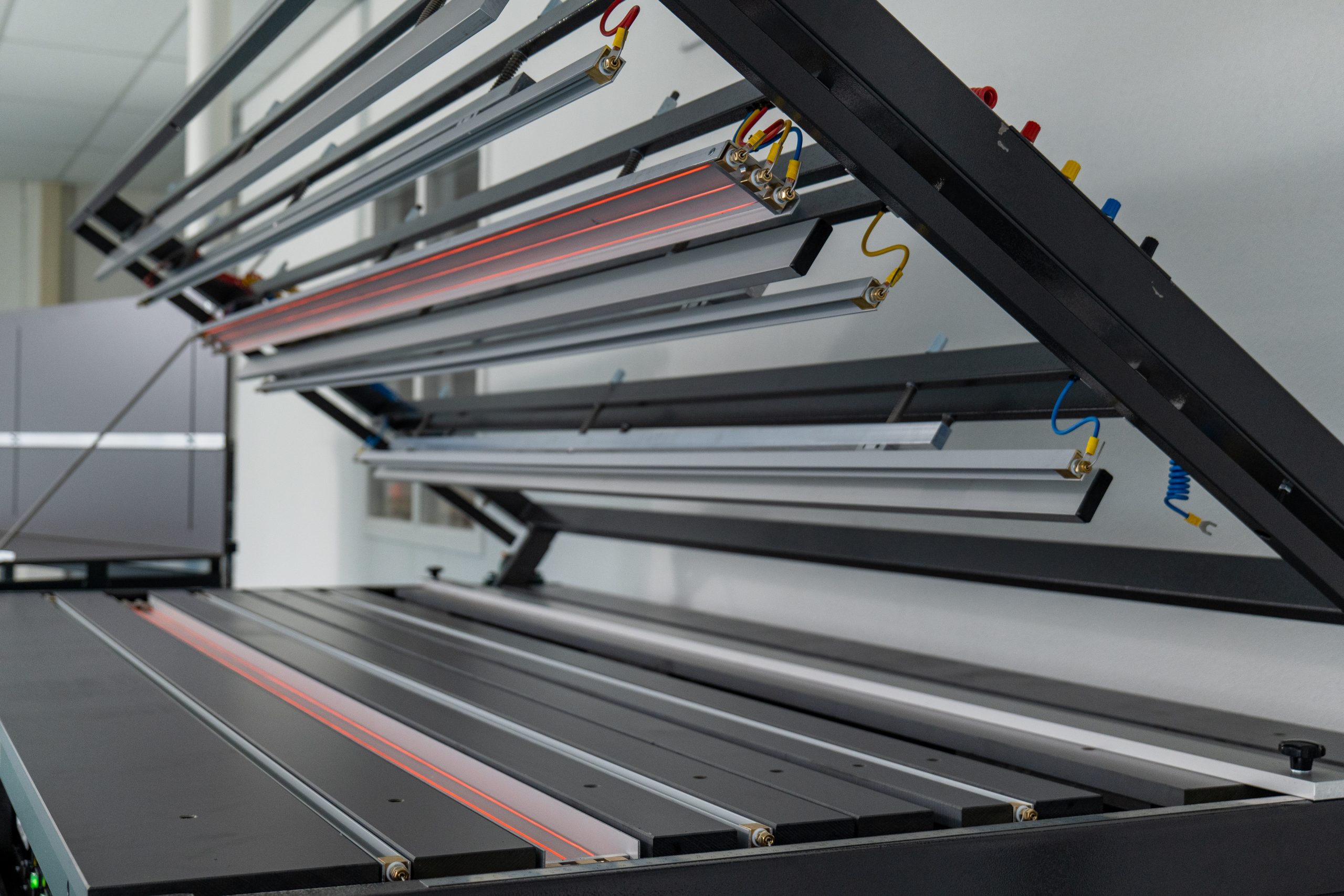 La superfície de treball duradora resistent a la calor consta de diversos panells ajustables i té un topall paral·lel amb indicació en mil·límetres i polzades. La màquina té una construcció modular i ja està preparada internament perquè pugui ampliar fàcilment amb múltiples perfils d'escalfament i/o unitats de control. La màquina te dues parades d'emergència.