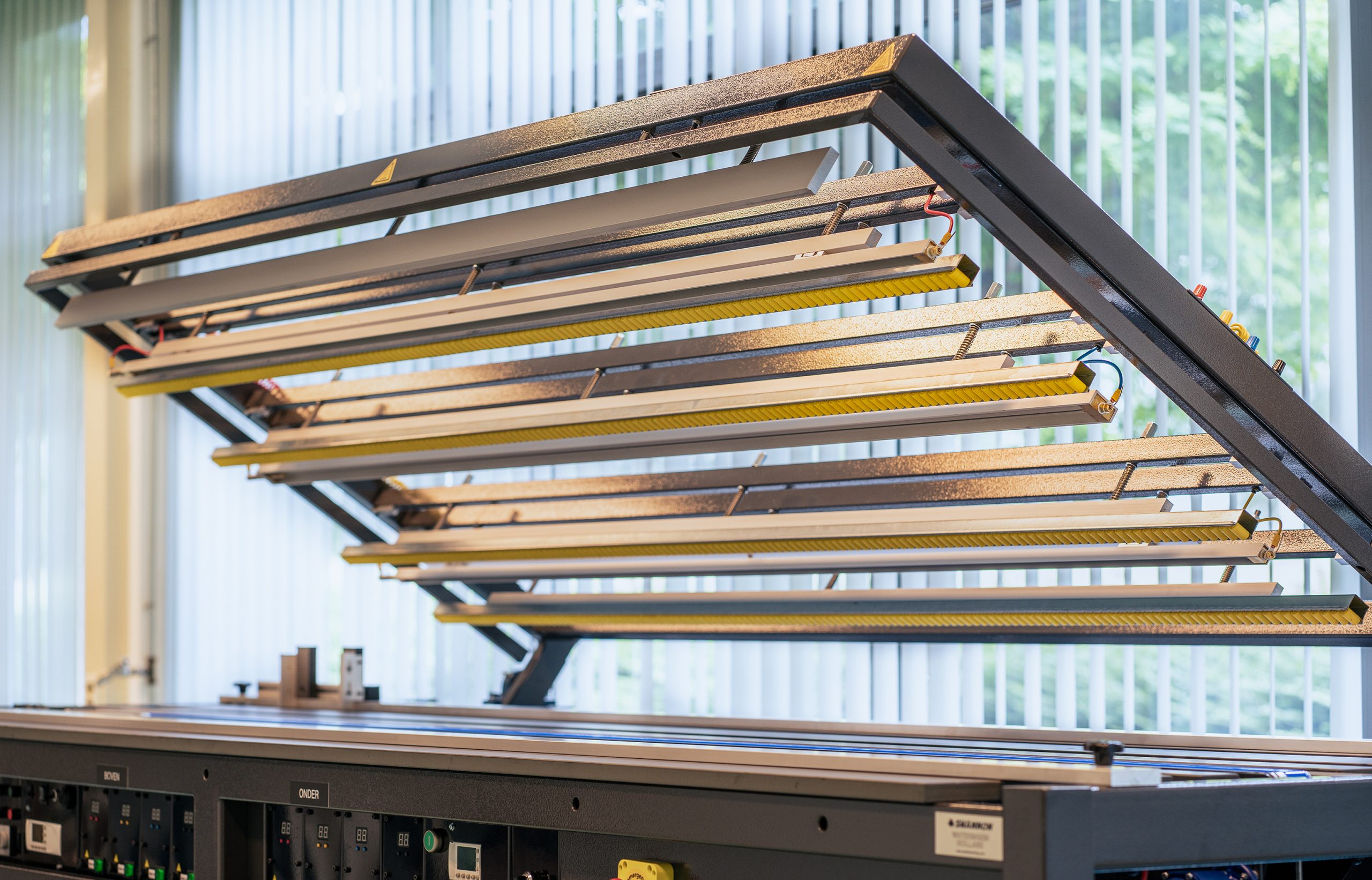 La superfície de treball duradora resistent a la calor consta de diversos panells ajustables, una cinta transportadora ajustable i té un topall paral·lel doble amb indicació de polzades i mil·límetres. La màquina, com la majoria de les nostres màquines, està construïda modularment perquè es pugui ampliar fàcilment més tard amb múltiples perfils de calefacció i/o unitats de control.