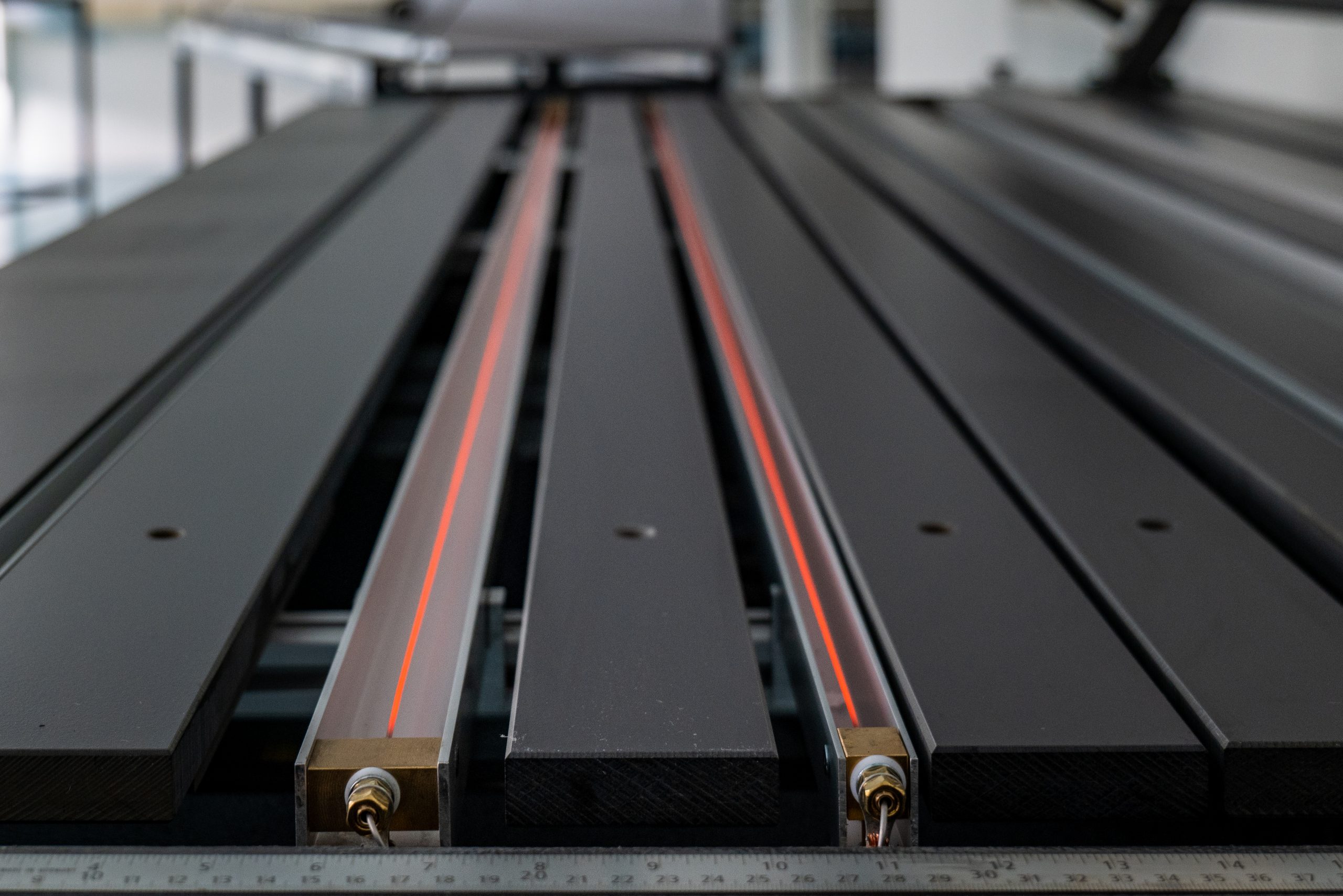 Les màquines tenen una construcció modular i ja estan preparades internament perquè es puguin ampliar fàcilment amb múltiples perfils d'escalfament i/o unitats de control. Els fils calefactors dels perfils són regulables en alçada i regulables amb molta precisió a temperatura mitjançant unitat digital. La màquina per al doblegat de metacrilat HRT està equipada de sèrie amb un topall paral·lel amb indicació en mil·límetres i polzades.