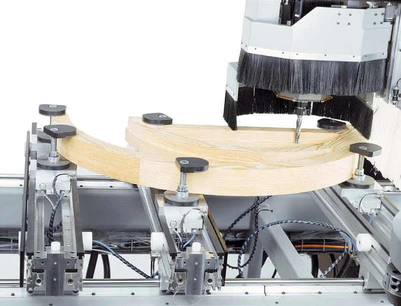 La versatilitat i potència d’aquest centre de mecanitzat és ideal per a empreses de fusteria petites i mitjanes. El seu disseny compacte i eficient redueix les superfícies d’instal·lació i facilita la manipulació directa des de la màquina. Dins d’aquesta gamma, hi trobarà solucions de 3 a 5 eixos. A la fresadora de 3 eixos es pot integrar un eix C, proporcionant una major flexibilitat per a l’ús d’agregats i permetent una varietat d’aplicacions per al mecanitzat de mobles de cuina, oficina, fusta massissa, així com elements per a escales, finestres i portes.