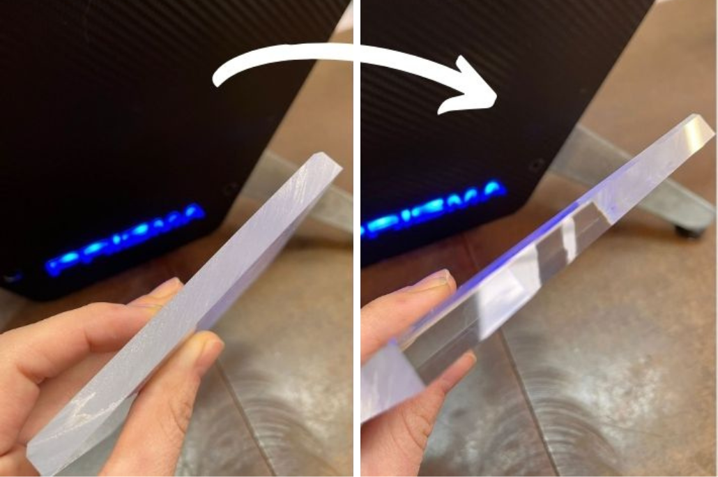 De fet, la PRISMA i la BOX conformen la parella perfecta per als fabricants de peces de metacrilat. Amb la biseladora de cants és possible aconseguir des d'una peça amb bisellat complet a angles treballats a 44° i 45°. D'altra banda, amb la BOX, és possible polir cants rectes. Totes dues màquines tenen un preu molt econòmic i permeten satisfer les necessitats de poliment de cants tant en recte com en bisellat. El millor de tot és que, en ser màquines compactes i portàtils, és possible situar-les en qualsevol lloc del taller i ser fàcilment transportables a altres punts o llocs.