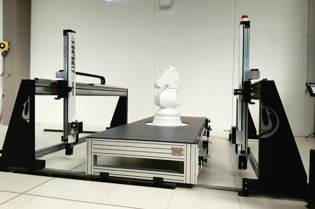 Gràcies a la seva estructura, que es mou amb suavitat i sense esforç sobre rieles, és possible ampliar l'àrea de treball del Infinity Sniper, permetent corts de més de 4 metres de longitud. La màquina de tall de poliestirè pot alternar ràpidament entre cicles de treball industrials i configuracions per a realitzar talls precisos.