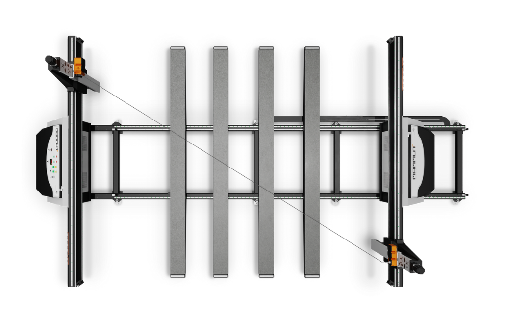 Equipada amb 4 taulers lliscants de marbre amb bloqueig pneumàtic que poden desplaçar-se fàcilment per guies de recirculació de boles. Per tant, permet una càrrega fàcil i ràpida de blocs de poliestirè, gràcies als corrons col·locats en l'extrem de cada tauler. A més, el procés de tall amb el filferro continua sent suau fins i tot amb blocs de gran grandària. Els taulers són uniformes i estan perfectament anivellats, la qual cosa permet un tall precís fins i tot de formes de petita grandària.